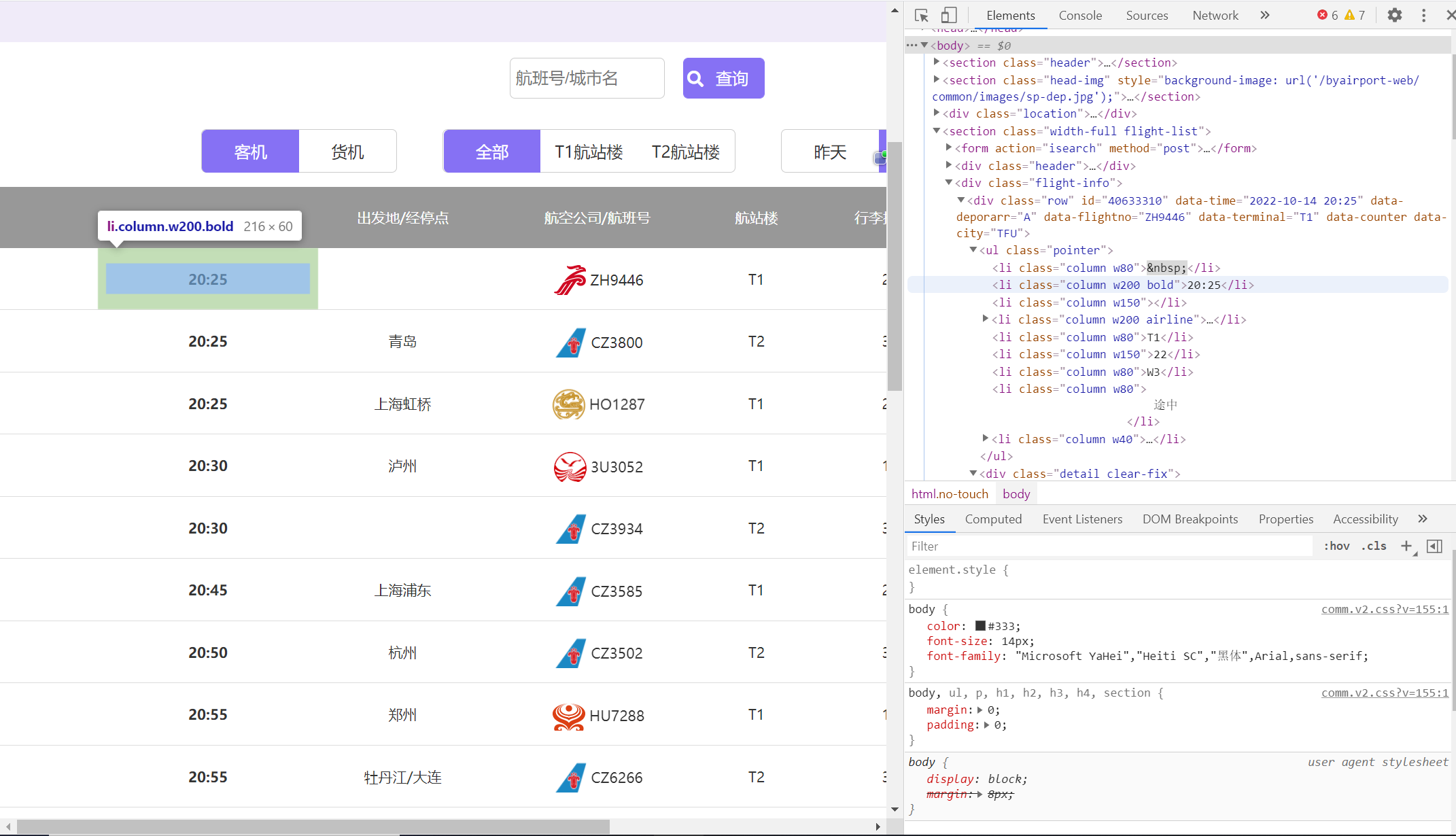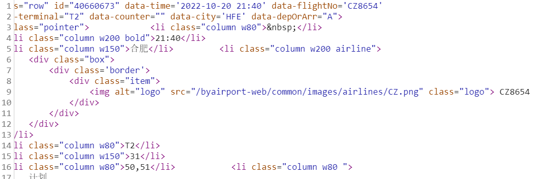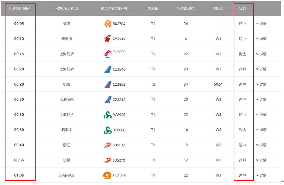 通过分析网站页面我们可以锁定我们所需要数据包括计划到达时间和状态这两列,如下图所示: