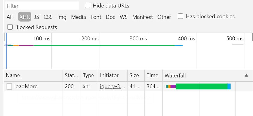 通过详情可以看到按钮的功能是向地址 https://www.gbiac.net/byairport-web/flight/loadMore 发送一个 Post 请求。