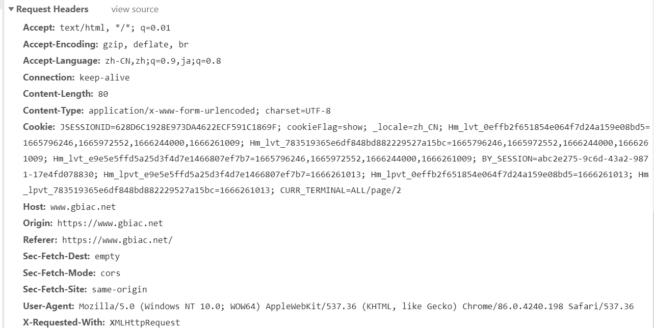 然后,研究 Post 请求的报文结构,关键是 header 头部的组成以及 Data 部分的数据处理。头部信息如下,复用以下信息即可。